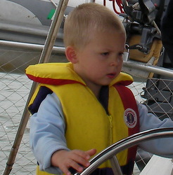 Max : Just changed from our little baby to a rough and tumble 3 year old. Stubborn and wilful, he gets himself into plenty of trouble. However, he's sociable, always wants to help and makes a great host. Wants to be on the boat all the time.